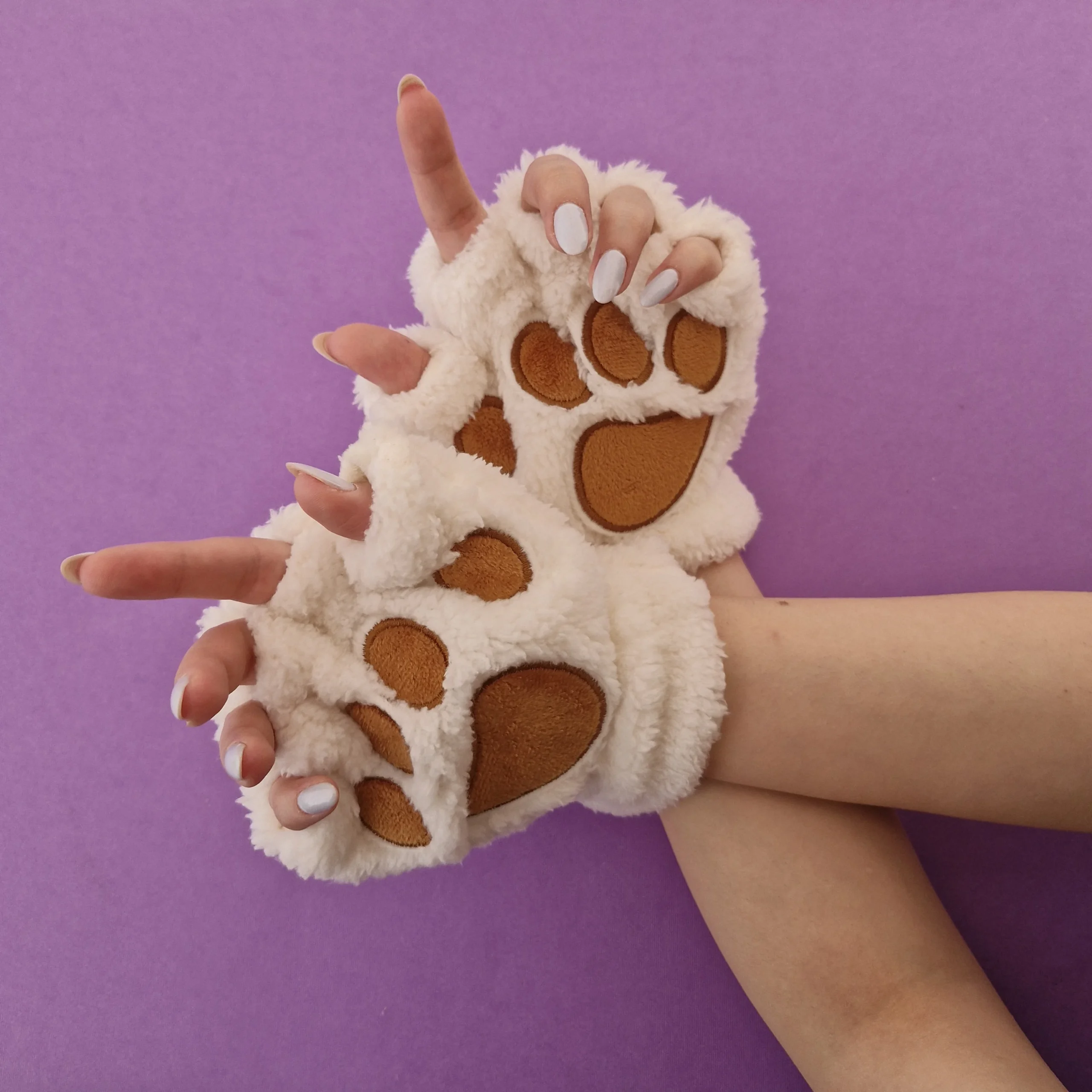 روی پنجه این دستکش طراحی گربه شکلی با رنگ قهوه ایی و از جنس مخمل کریستال است که زیبایی آن را چند برابر کرده.